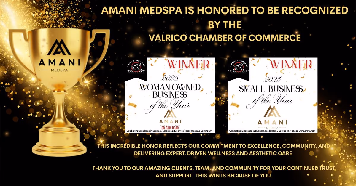 Amani MedSpa is honored to be a 2025 Valrico Chamber of Commerce award winner, receiving Woman-Owned Business of the Year and Small Business of the Year.